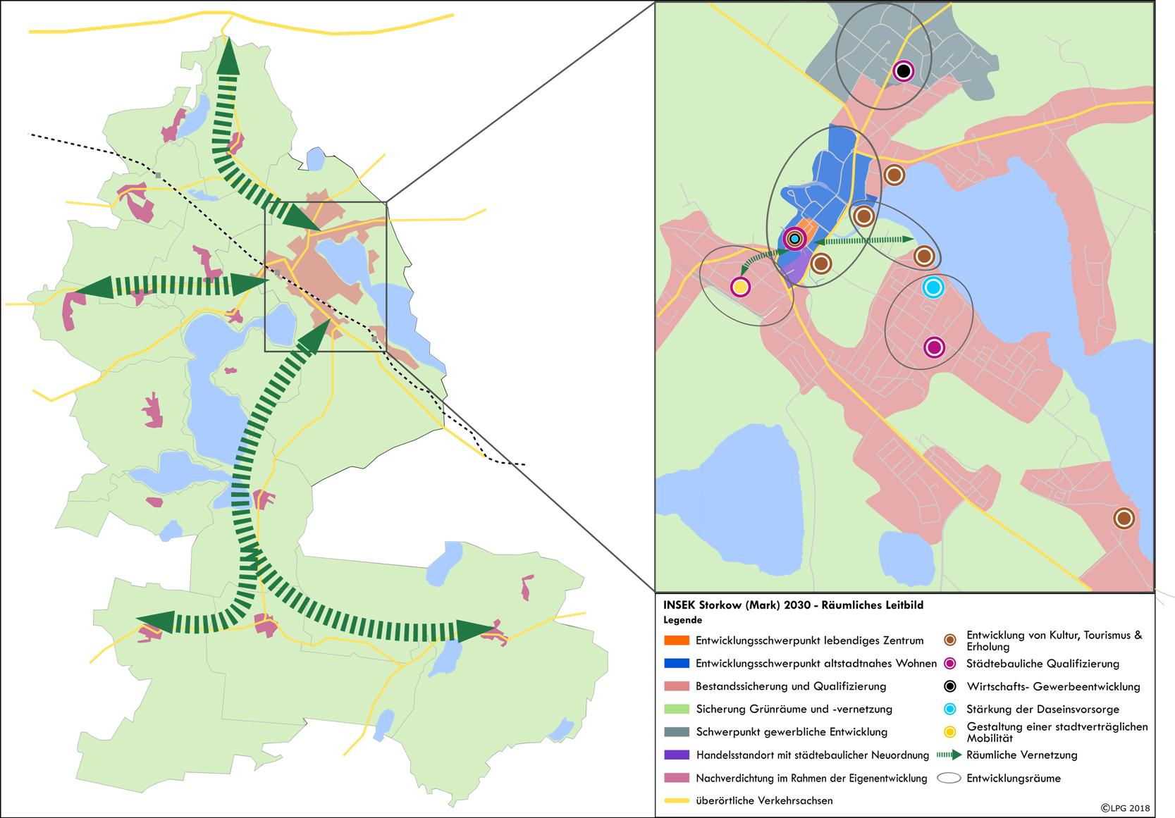 Das Integrierte Stadtentwicklungskonzept wurde im Jahr 2017 unter breiter Beteiligung der Öffentlichkeit durch unser Büro erstellt. In insgesamt sechs öffentlichen Planungswerkstätten wurden gemeinsam mit den Einwohnerinnen und Einwohnern von Storkow (Mark) die Stärken und Schwächen der Stadt analysiert, konkrete Zielstellungen sowie Maßnahmen für die weitere Entwicklung der Stadt und seiner Ortsteile erarbeitet. Dabei wurden alle wichtigen Themenkomplexe der Stadtentwicklung beleuchtet. Das INSEK Storkow (Mark) 2030 wurde am 17.05.2018 durch die Stadtverordnetenversammlung beschlossen und erfüllt gemeinsam mit dem Stadtleitbild die Leitbildfunktion für die Stadtentwicklung bis 2030.