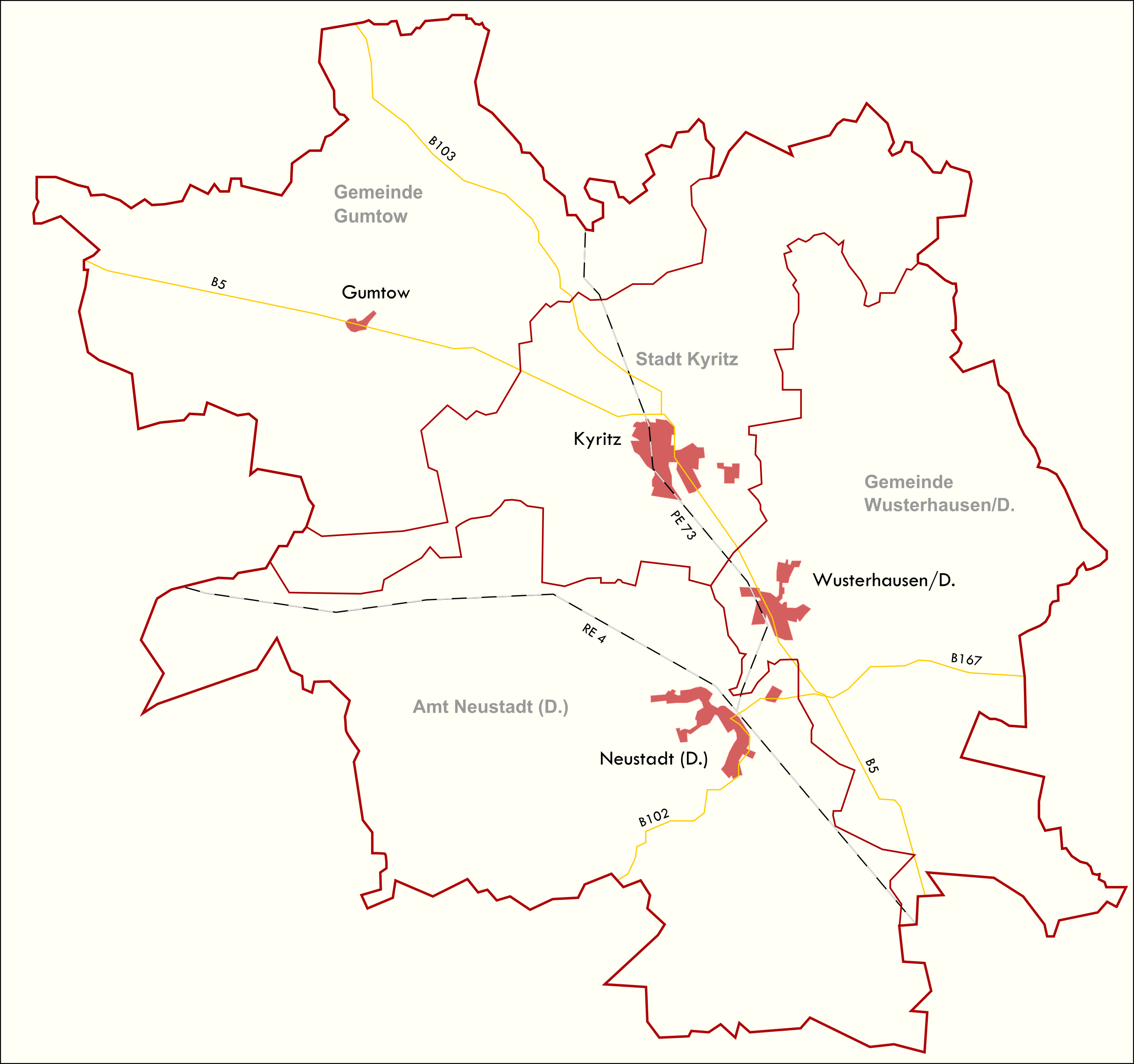 Im Landesentwicklungsplan von 2009 legte das Land Brandenburg Mittelbereiche als Bezugsgrößen der Landesplanung fest, in denen die Daseinsvorsorge der Bevölkerung sichergestellt werden soll. Bereits im Sommer 2007 entschieden sich die Stadt Kyritz, die Gemeinde Wusterhausen/Dosse und das Amt Neustadt (Dosse) als drei der vier Kommunen des Mittelbereichs eine überörtliche Verantwortungsgemeinschaft unter dem Namen „Kleeblatt“ zu bilden und sich der Sicherung der mittelzentralen Daseinsvorsorge im Kooperationsraum in Zeiten knapper Finanzmittel und geringer Handlungsspielräume der Kommunen durch eine enge und vertrauensvolle Zusammenarbeit gemeinsam zu stellen. Im Jahr 2010 schloss sich auch die Gemeinde Gumtow der interkommunalen Kooperation an.
